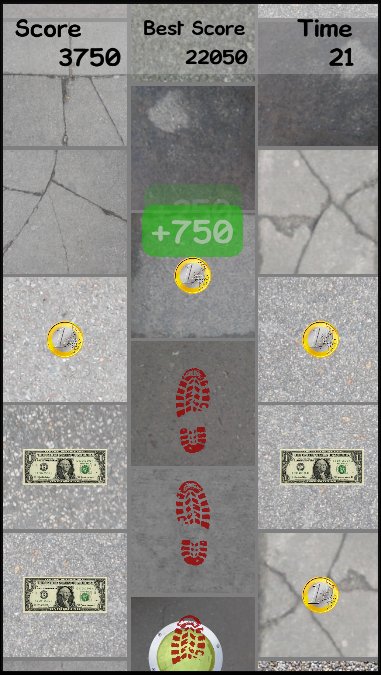 You have thirty seconds to achieve best score. You can go as you want, but each line stepped means less points - and time is running! The counter ticks seconds left, but if you find clock - you have 7 seconds extra, every time!